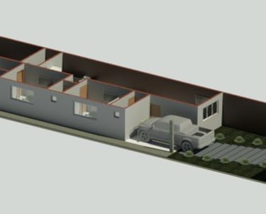 O projeto residencial foi desenvolvido para atender as necessidades de uma família composta por um casal e dois filhos, em um lote de 9m x 30m. A planta foi personalizada conforme as preferências do cliente, incluindo dois quartos, um banheiro social e uma suíte com closet, além de sala de estar, cozinha americana, lavanderia e depósito. O layout foi planejado para garantir funcionalidade e conforto, integrando os espaços de forma harmoniosa e aproveitando ao máximo a iluminação e ventilação natural. Cada detalhe foi pensado para criar um ambiente prático, aconchegante e alinhado ao estilo de vida da família.