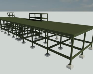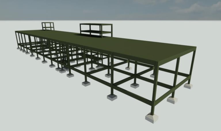 O projeto estrutural desenvolvido para o galpão industrial e bloco administrativo contemplou uma estrutura robusta e eficiente, garantindo segurança e funcionalidade para a edificação. Foram dimensionadas e especificadas sapatas, pilares, vigas e lajes treliçadas, assegurando a estabilidade da construção e a distribuição adequada das cargas. Além disso, foi realizado o levantamento estrutural para os reservatórios, garantindo suporte adequado para o armazenamento de água. Todo o projeto foi planejado para otimizar durabilidade, resistência e viabilidade construtiva, atendendo às necessidades operacionais do empreendimento.