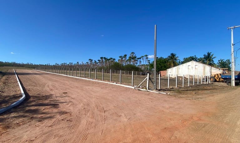 A execução da infraestrutura para o loteamento contou com um trabalho completo de terraplanagem em uma área de aproximadamente 5.000 m² na zona rural. Foram utilizados motoniveladora, retroescavadeira e caminhões para nivelamento e conformação do terreno, garantindo uma base sólida para as futuras construções. Além disso, foi feita a implantação de meio-fio, auxiliando na organização das vias e no direcionamento do escoamento pluvial. Todo o processo seguiu critérios técnicos rigorosos para assegurar durabilidade, funcionalidade e adequação ao desenvolvimento urbano planejado.